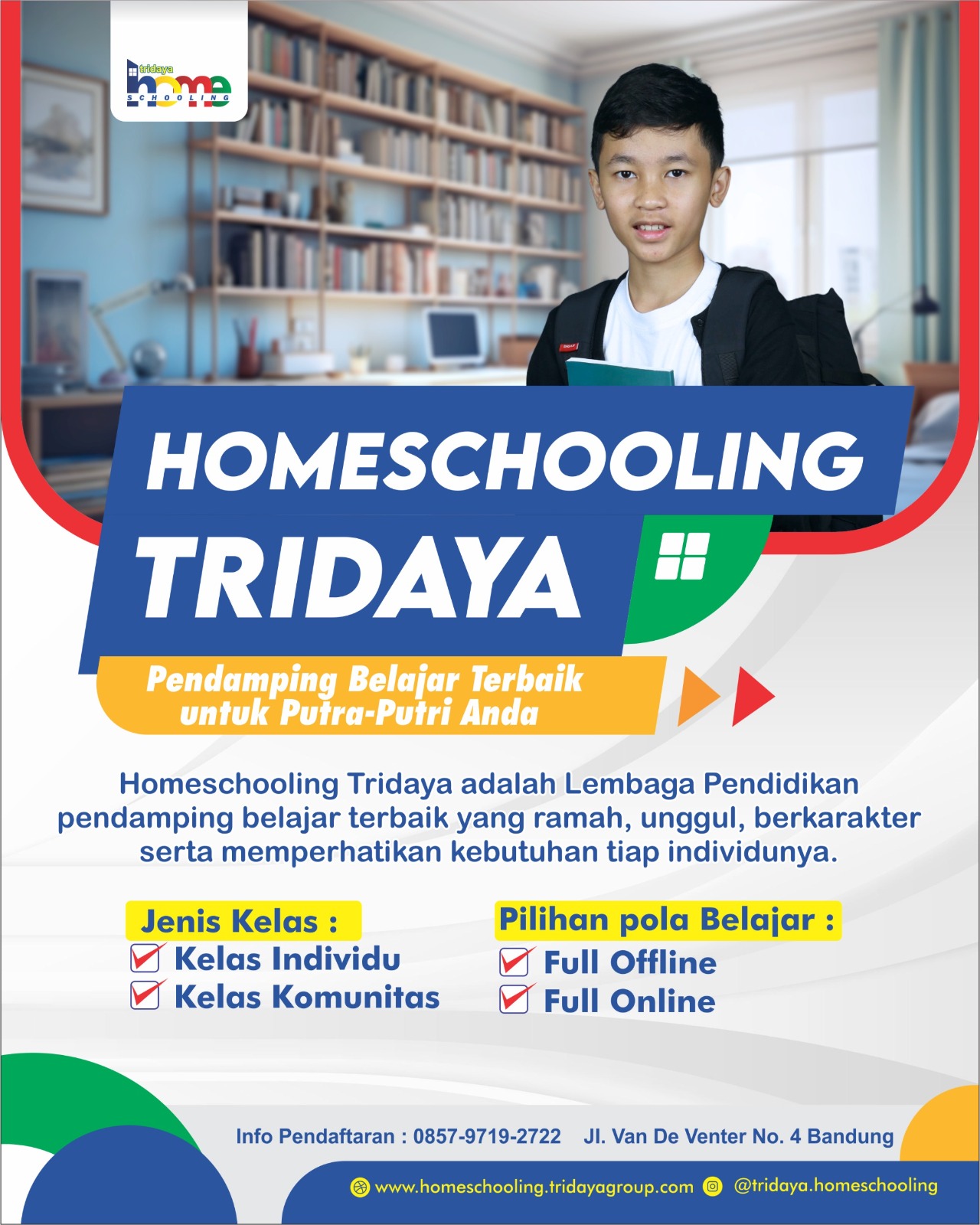 Sistem Pendekatan Individu atau yang dikenal dengan SPI menjadi landasan Tridaya dalam memberikan layanan pendidikan. Dimulai dari siswa jenjang SD, lalu SMP kemudian SMA, Homeschooling Tridaya terus bergerak secara dinamis memenuhi setiap kebutuhan siswa yang senantiasa berubah sesuai perkembangan pendidikan di Indonesia dan sesuai dengan tuntutan zaman.